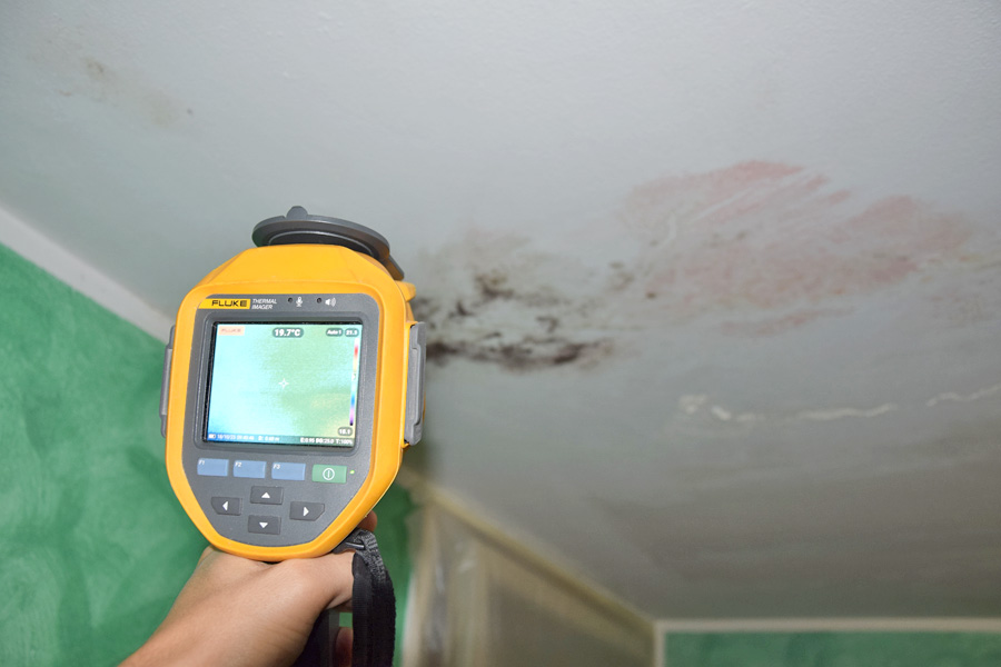 La situazione è parsa subito molto chiara al nostro tecnico specializzato che ha effettuato il sopralluogo: dall’analisi compiuta, anche con l’ausilio della termocamera, è emerso che nelle lastre predalles che costituiscono il soffitto del locale taverna era presente dell’acqua. La superficie infatti si presentava con aloni e diverse macchie tipiche delle infiltrazioni.